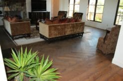 The Desert Choice: Engineered hardwood is the unsung hero of the Southwest. Because it is constructed in cross-grain layers with a real wood veneer on top, it possesses a structural “tension” that resists shrinking and warping much better than solid wood. It provides the exact same look but with far more stability on a hot concrete slab.